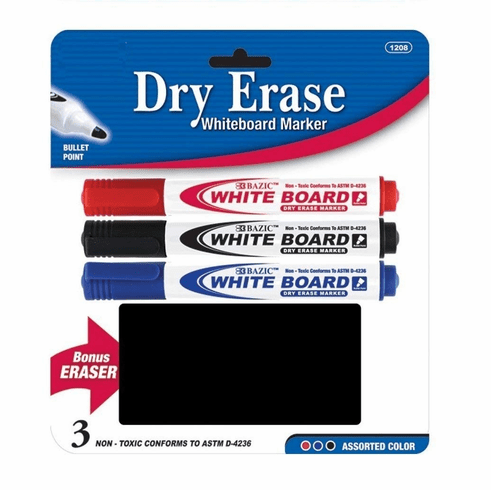 "3 Bullet Tip Dry Erase Marker with Eraser